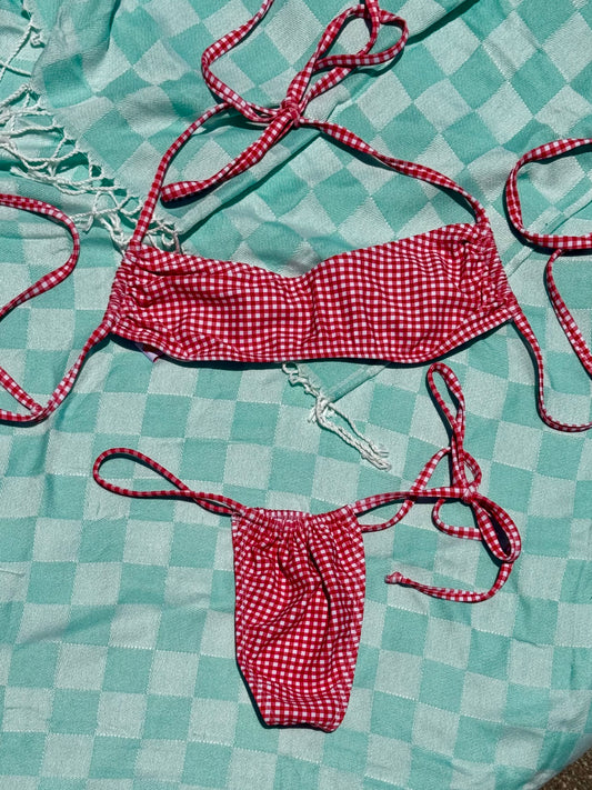 Red Gingham Classic String Bikini Bottom
